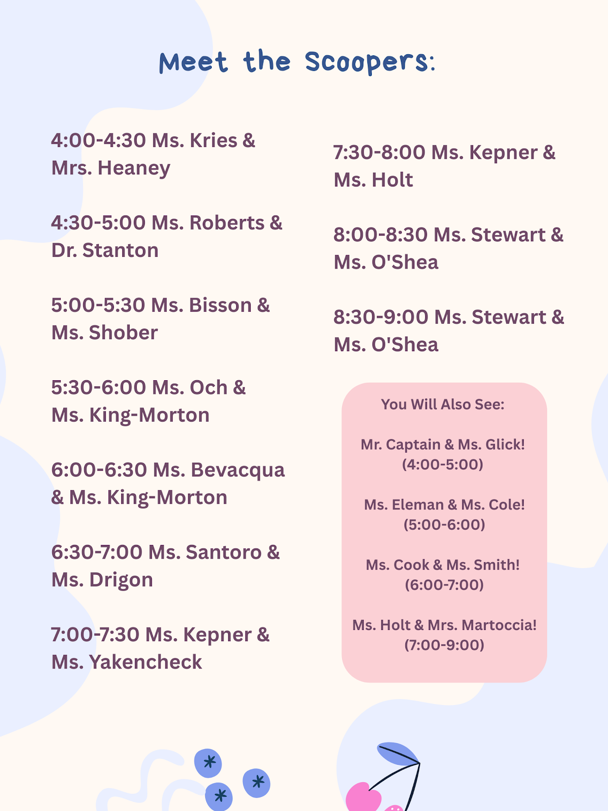 The BCMS Student Council is hosting “Celebrity Scoop” on March 26th - Flyer Many of our SBS staff will be scooping. Take a look and be sure to visit!